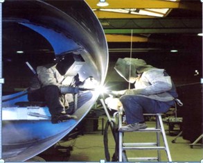 隨著鋁及鋁合金罐體、槽車等焊接結(jié)構(gòu)的發(fā)展,罐體對接的縱焊縫和環(huán)焊縫的焊接,由過去效率低的單槍交流TIG雙面焊接,改進為兩臺焊接電源同步從正反面使用交流氬弧焊實施對弧焊接;背面不用清根,雙面一次成形,焊透性好;減少了焊前預(yù)熱,加強了背面保護,幾乎沒有氣孔、未熔合等焊接缺陷;焊接效率提高了一倍。